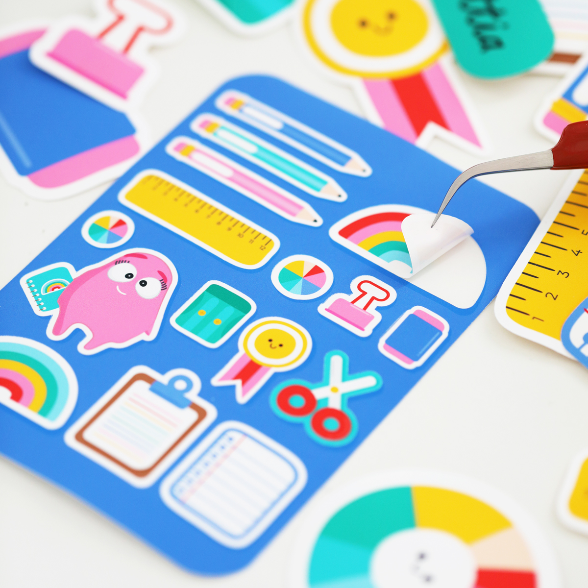 Aplicarea stickerului se realizează pe suprafețe netede, curate și degresate în prealabil. Suportul siliconat se îndepărtează cu grijă, fără atingerea adezivului, după care autocolantul se poziționează pe suprafață și se netezește uniform pentru eliminarea bulelor de aer și fixare completă.